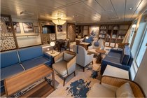 Las áreas de reunión siempre han desempeñado un papel importante en el fomento de la cálida camaradería a bordo de nuestros barcos. Son el corazón de la expedición, donde la gente se reúne para compartir historias del día, intercambiar fotos, estar atento a la vida silvestre y ver la puesta de sol. Los bares y salones a bordo son lugares refinados pero acogedores para reunirse, con ventanas de piso a techo que ofrecen vistas impresionantes y, por supuesto, amables camareros.