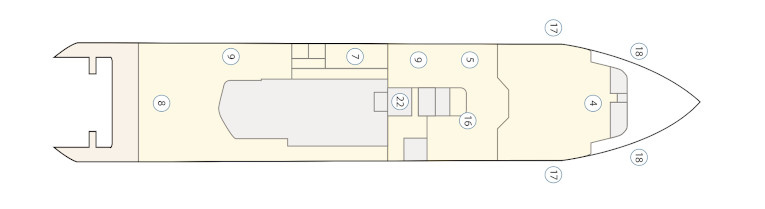 Los botes Zodiac son una parte vital para acercarse a su aventura de manera personal, ya que se escabullen en áreas que Greg Mortimer no puede alcanzar. En este nuevo barco, hay plataformas de lanzamiento especialmente diseñadas que nos permiten cargar Zodiacs de manera fácil y rápida, lo que le permite pasar más tiempo explorando en los dos o tres aterrizajes diarios. Hay 15 botes zodiac que se abordan a ambos lados de la Cubierta 3 (nivel del mar).