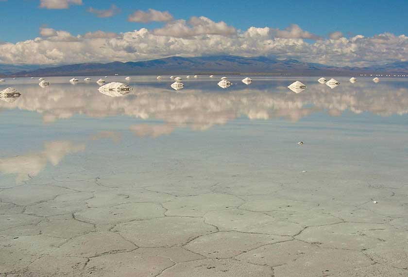 Las Salinas Grandes son uno de los paisajes más impresionantes del norte argentino, situadas a unos 3.600 metros sobre el nivel del mar, en plena región de la Puna. Este vasto salar se extiende hasta donde alcanza la vista, con su superficie blanca y brillante, formada por millones de años de evaporación de antiguas lagunas saladas. Caminar sobre la sal es una experiencia única, mientras el horizonte se fusiona con el cielo creando una sensación de inmensidad y pureza. La luz del sol transforma constantemente los colores y reflejos, ofreciendo oportunidades únicas para fotografías y videos memorables. Además, las Salinas Grandes no solo son un espectáculo visual, sino también un lugar cargado de historia geológica y cultural, donde se puede sentir la conexión con la naturaleza extrema y la tradición de los pueblos originarios que habitan la región.
